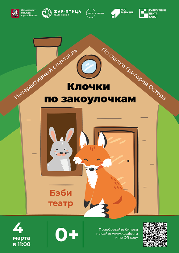 Театр для самых маленьких, детей от года, – не просто развлечение, это способ познания мира через искусство. Наш новый спектакль играют не на сцене, а в уютном фойе. Это настоящий спектакль, только с наибольшим вниманием к вам. Ведь наши актеры и куклы ждут самых маленьких зрителей и их родителей. На мягких подушках, в защищенном пространстве вы становитесь не только свидетелями, но и участниками театральной игры.