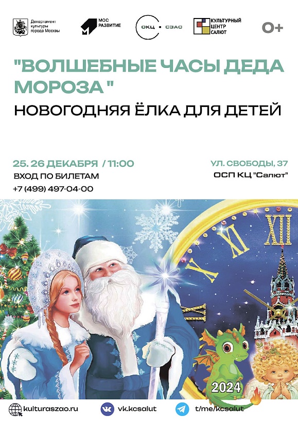 Красочное веселое Новогоднее представление с элементами интерактива «ВОЛШЕБНЫЕ ЧАСЫ ДЕДА МОРОЗА»