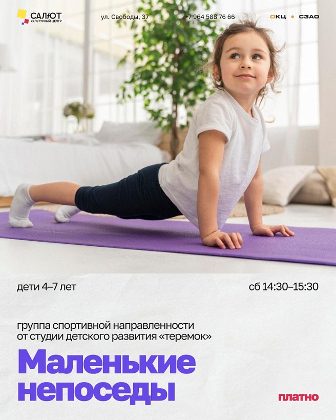 В Культурном центре «Салют» открыт набор в группу спортивной направленности «Маленькие непоседы» от студии интеллектуального и творческого развития «Теремок».