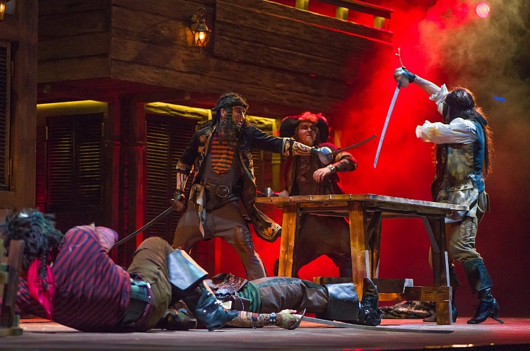 Оригинальный сценарий по мотивам романа Стивенсона, потрясающие песни, живой вокал, захватывающие бои и весёлые пиратские танцы – всё это ваш любимый «Остров Сокровищ!