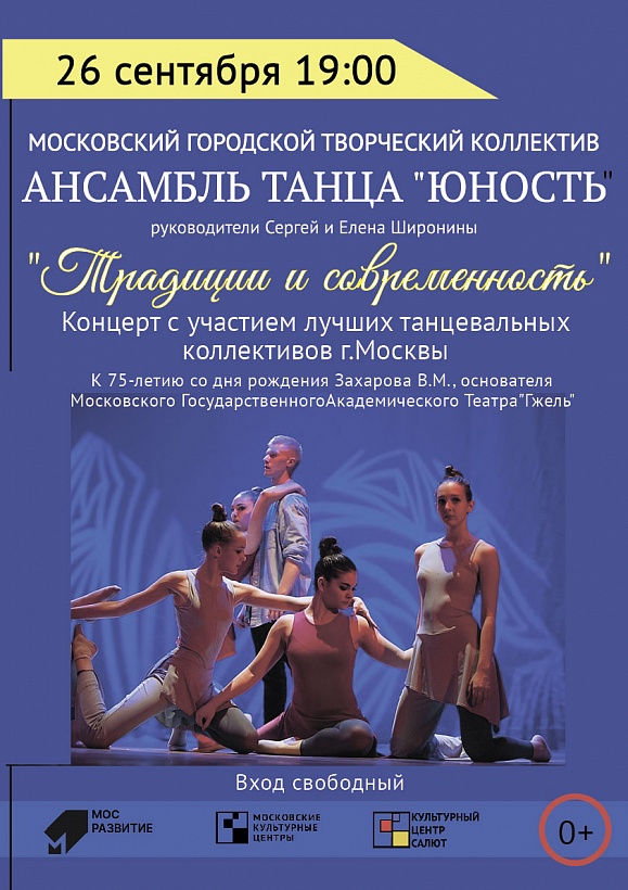 Концерт "Традиции и современность" 26.09.2021 19:00 В концерте примут участие 13 приглашенных хореографических коллективов.