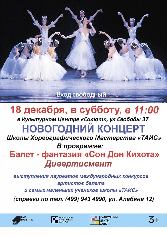 В Культурном центре "Салют" пройдет "Новогодний концерт" от Школы Хореографического Мастерства "ТАИС"