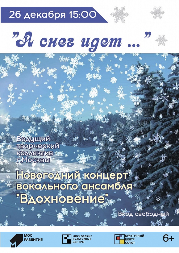 «А снег идет…» - так называется программа вечера, на котором всех гостей ждут лучшие номера в исполнении солистов и участников художественной самодеятельности.