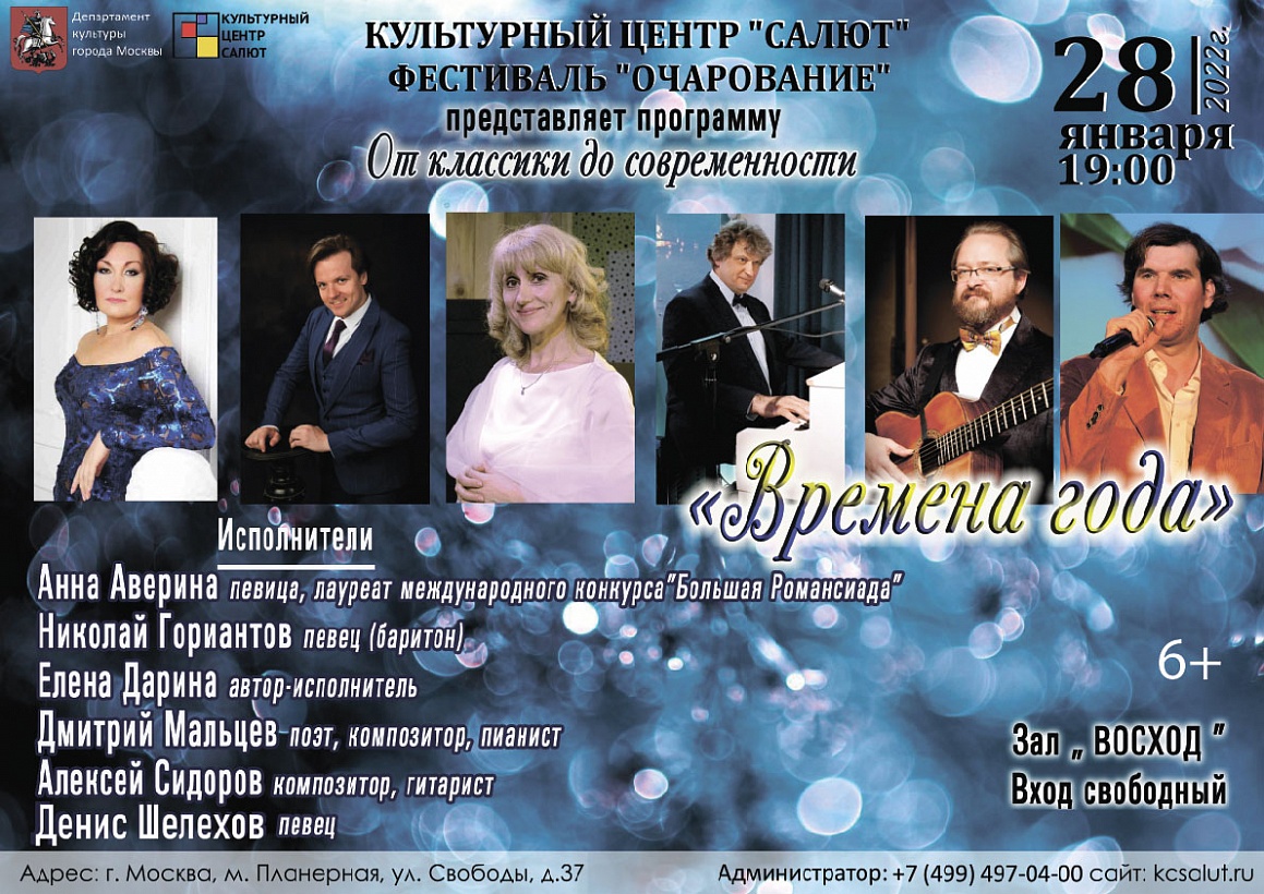 Фестиваль "Очарование" предлагает вниманию зрителей новую концертную программу, в которой принимают участие члены жюри фестиваля "Очарование" и лауреаты фестиваля прошлых лет.