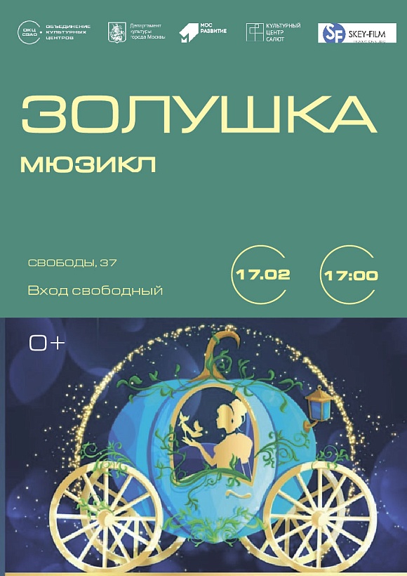 Премьера мюзикла "Золушка, новая история" состоится на главной сцене КЦ "Салют" 17 февраля в 17.00 (Москва. Ул. Свободы,37).