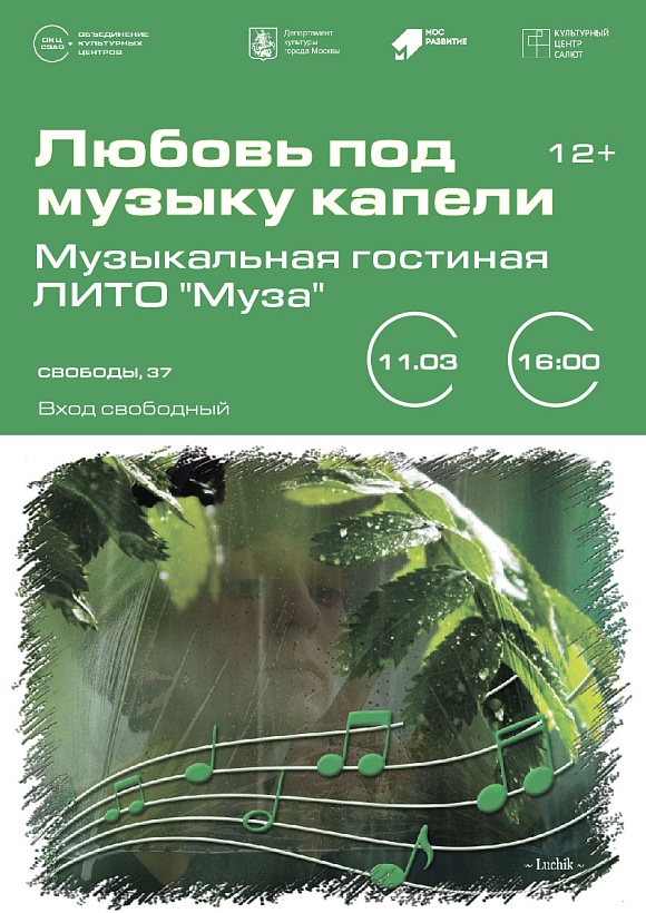 Поэты литературно-музыкального объединения "Муза" приглашают гостей на свой концерт, посвященный Международному женскому дню 8-е Марта. Прославлять прекрасную половину человечества стихами берутся член Союза писателей России Юрий Мурашкин и опытный поэт Борис Линдин. Поддержит их песнями о любви к женщине, весне, нежности и верности многим уже знакомый певец Юрий Пахомов.