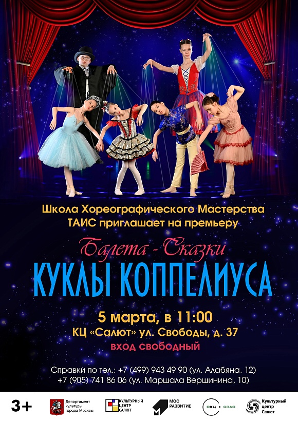 Зрителям будут показан балет-сказка "Куклы Коппелиуса" и номера Современной и Классической хореографии.