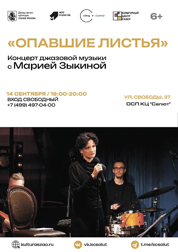 Культурный центр "Салют" устраивает вечер живой музыки. Джазовые ноты элегантно наполнят воздух, когда на сцене состоится незабываемый джазовый концерт. Будьте готовы окунуться в мир музыки, где проникновенные вокальные партии соединяются в гармоничное течение звуков.