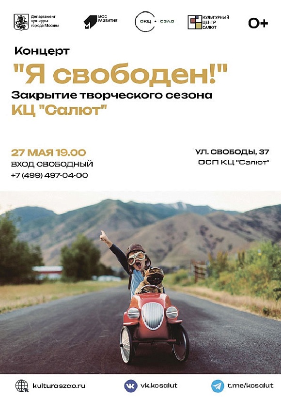 В культурном центре "Салют" пройдет креативный концерт "Я свободен!". Организаторы мероприятия пошли на смелый эксперимент, способный удивить даже самого искушенного зрителя!