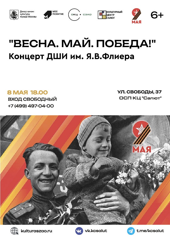 Праздничная программа пройдет на сцене большого концертного зала КЦ "Салют" и станет подарком как для ветеранов, так и для жителей и гостей столицы.