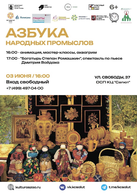 В рамках семейного мероприятия пройдет выставка народных художественных промыслов, большая анимационная программа. Всех посетителей ждет аквагрим, увлекательные мастер-классы, фотозона.