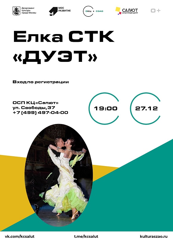Танцевальные пары спортивно-танцевального клуба "Дуэт" успешно выступили на новогоднем концерте. В клубе преподаются европейские и латиноамериканские танцы: медленный вальс и медленный фокстрот, танго, венский вальс, квикстеп, самба, ча-ча-ча, румба, пасодобль и джайв. Кроме спортивных бальных танцев, в клубе учат современной хореографии, благодаря чему участники коллектива умеют красиво двигаться, и всегда находятся в отличной спортивной форме. Уверены, что музыка, магия танца, азарт, царящие на сцене во время выступления, не оставили никого равнодушным!