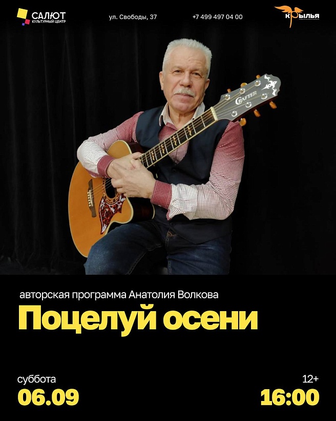 На концерте талантливого автора и исполнителя Анатолия Волкова осень оживет в песнях, наполненных теплом, светлой грустью и радостью встречи…
