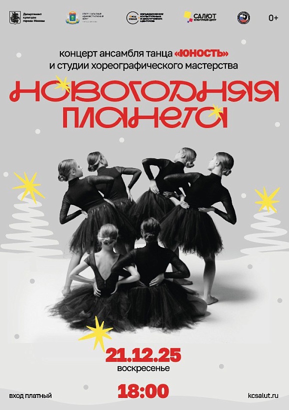 В концертную программу войдут лучшие номера в исполнении артистов Ансамбля танца «Юность», а также детские и эстрадные танцы наших маленьких воспитанников из Студии хореографического мастерства, которые только начинают свой путь в мире танцевального искусства. Вас ждет насыщенная программа: премьерные постановки, танцы из "золотого фонда" коллектива и танцевальные номера разнообразных хореографических направлений – от народного танца и танцев народов мира до современных стилей. За свою богатую историю коллектив неоднократно становился обладателем наивысших наград на Всероссийских и Международных фестивалях и конкурсах, гастролировал в Крыму, на Мальте, в Италии и Индонезии, выступал на лучших мировых площадках планеты. Воплощение красоты и грации, таланта и трудолюбия – всё это ждёт вас на нашем концерте!