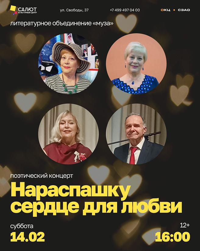 ЛИТО «Муза» приглашает на поэтический вечер, где Любовь прозвучит во всех её проявлениях — к жизни, Родине, семье, детям, природе и миру вокруг.