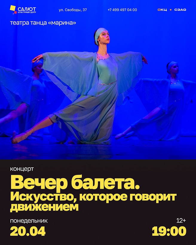 20 апреля на сцене КЦ «Салют» состоится Вечер балета от Ведущего творческого коллектива Москвы — Театра танца «Марина».