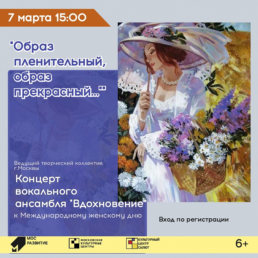 Концерт под названием "Образ пленительный, образ прекрасный" посвящен Международному женскому дню 8-е Марта. В концерте примут участие полюбившиеся многим певцы - народный артист Чувашии Валерий Иванов, Оксана Окунева, Ольга Бут, Юлия Матвеева и многие другие. Ведет концерт певец-тенор Алексей Назаров. Прозвучат песни- "Ты моя мелодия", "Весна", "Три белых коня", "Очарована, околдована", "Ариозо матери".