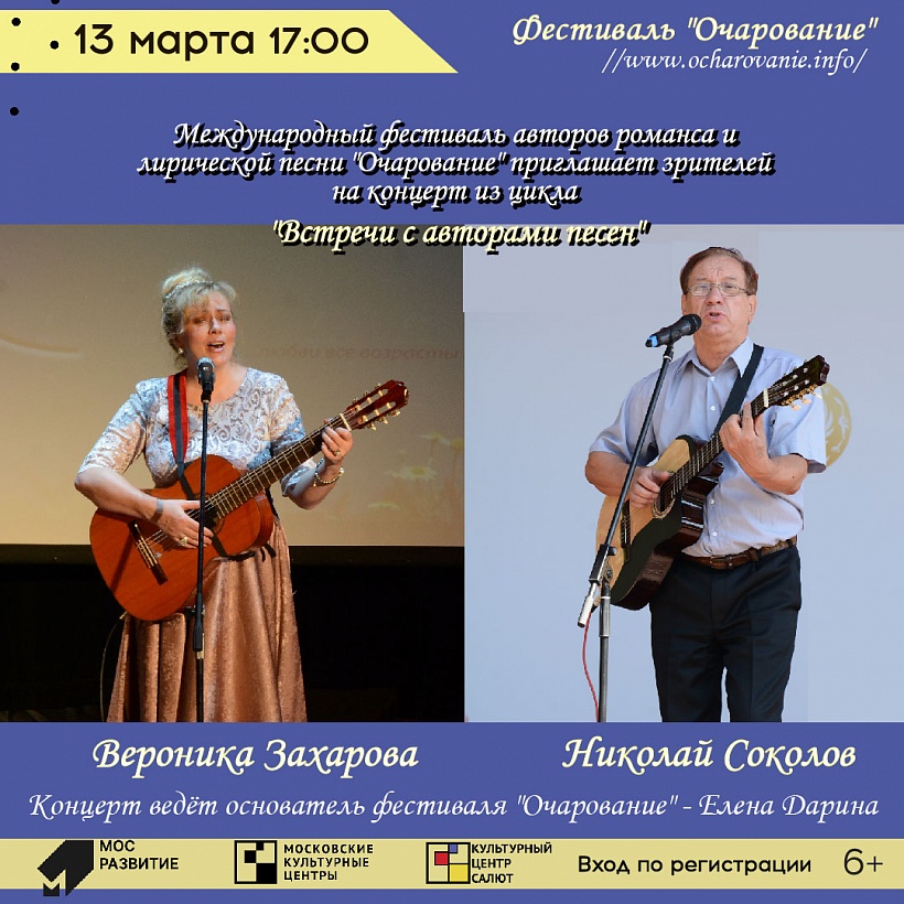 Международный фестиваль авторов романса и лирической песни «Очарование» https://www.ocharovanie.info/ приглашает зрителей на концерт из цикла «Встречи с авторами песен»