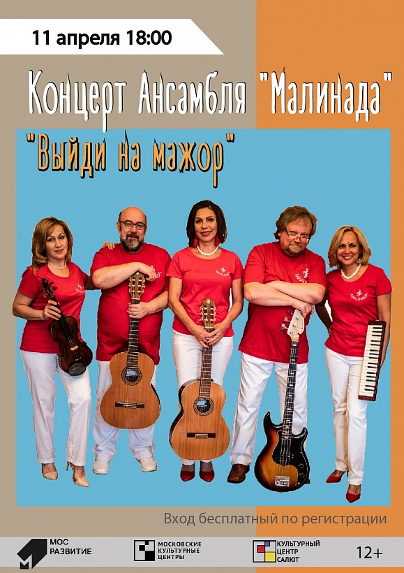 Приглашаем на потрясающий концерт Ансамбля "Малинада". В исполнении ансамбля прозвучат авторские инструментальные и песенные произведения, кавер версии популярных песен, в том числе в джазовой обработке. Юмористические и поэтические вставки отлично украсят концерт.