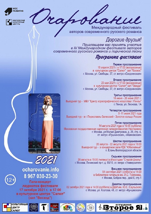 Международный фестиваль авторов романса и лирической песни «Очарование» https://www.ocharovanie.info/ приглашает зрителей на концерт
