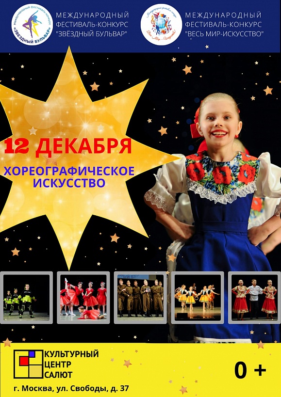 12 декабря "ЗВЁЗДНЫЙ БУЛЬВАР" и "Весь Мир - Искусство!" пройдут в КЦ "Салют" в прекрасном зале "Восход". Ждём Вас дорогие участники! Новогоднюю атмосферу и настроение гарантируем!