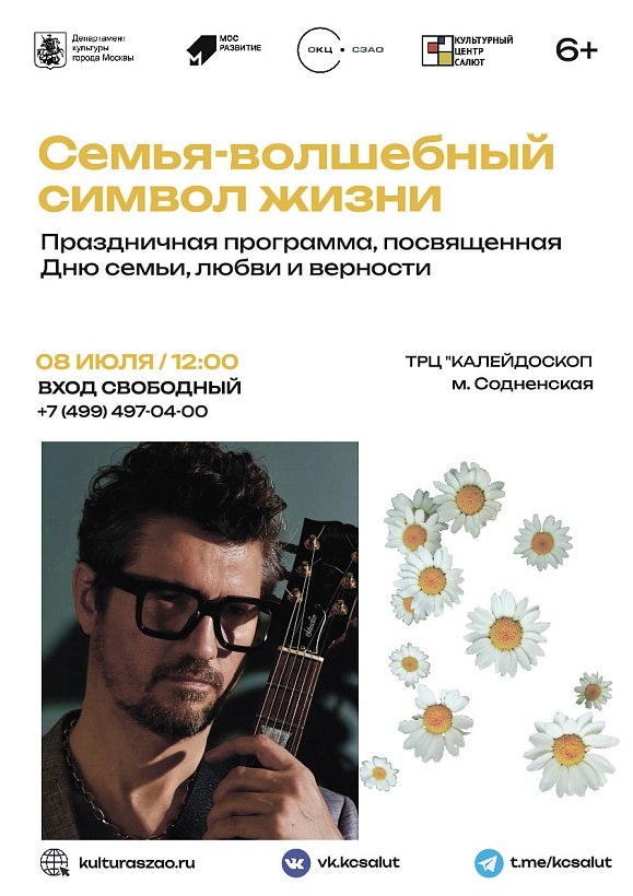 В программе праздника состоится концерт с тематическим репертуаром, серия мастер-классов по декоративно-прикладному творчеству, анимационная программа для самых маленьких. На праздник приглашаются семьи района Южное Тушино.