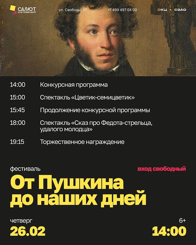 26 февраля КЦ «Салют» станет пространством живого русского слова и вдохновения. Мы приглашаем вас на открытый окружной чтецкий фестиваль, посвящённый красоте, силе и богатству русского языка