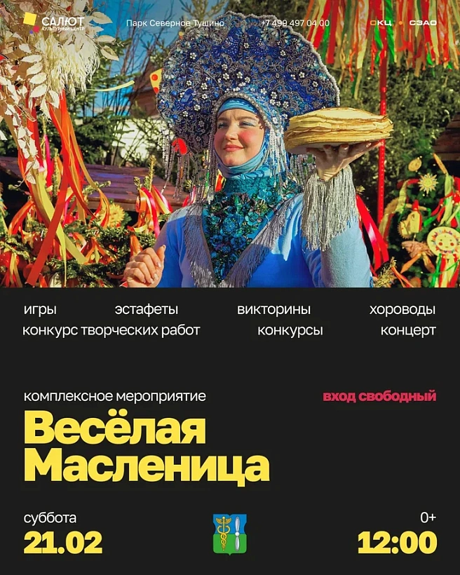 21 февраля с 12:00 до 14:00 парк «Северное Тушино» приглашает всех на яркое и запоминающееся Масленичное празднование!