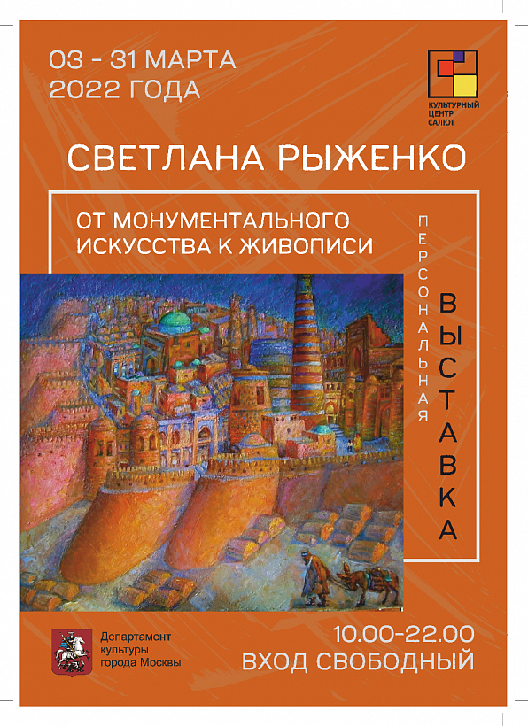 С 3 по 31 марта в Культурном центре "Салют" состоится Персональная выставка Светланы Рыженко. Творческий путь: от монументального искусства к живописи.