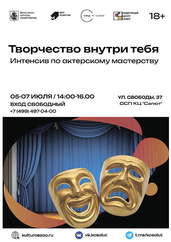 Актер начинается с идеи. Идея, как известно, самый сильный инструмент человека. С этого мы и начнем наш интенсив по актерскому мастерству. В течение трех дней мы будем исследовать творческую энергию, откуда брать идеи и куда их стоит направлять. Также рассмотрим и проведем упражнения в рамках психофизического тренинга, то есть те упражнения, которые разогревают тело и подключают воображение, внимание. Получается соединение физического и психологического. Мы научимся давать этому волю и раскрывать нас с с другой стороны. Также обучимся контролю тела и разума и откроем себя как актеров.