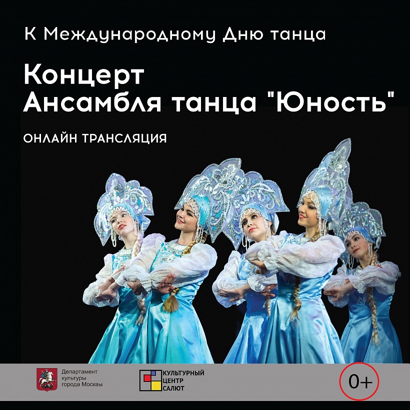 Специально к Международному Дню танца состоится видео-трансляция самых лучших номеров Московского городского творческого коллектива "Ансамбля танца "Юность"