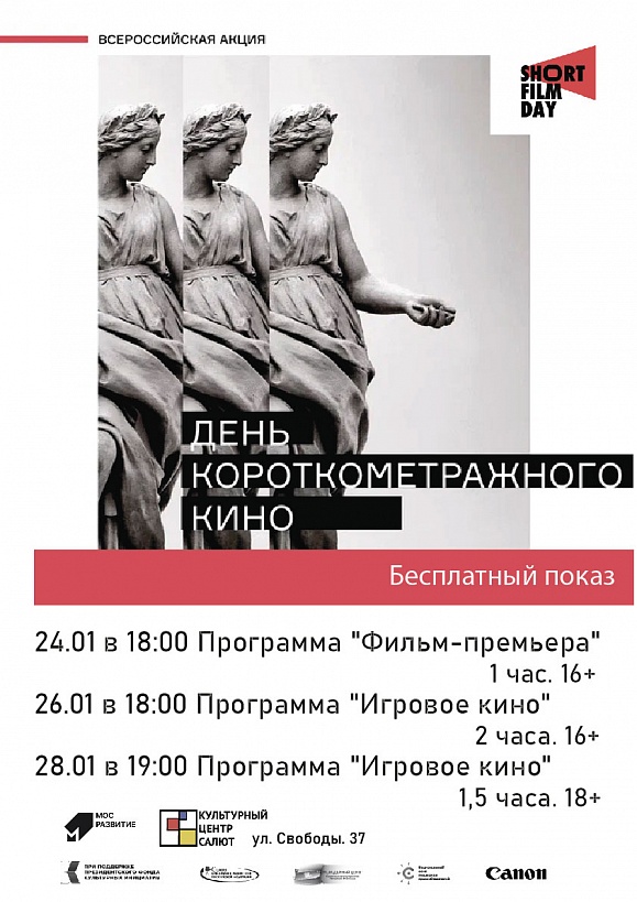 28.01 в 19:00. Короткометражные фильмы по программе "Игровое кино" 18+ https://www.shortday.ru/konkursnaya_programma_igrovoe_kino_18_2021 .