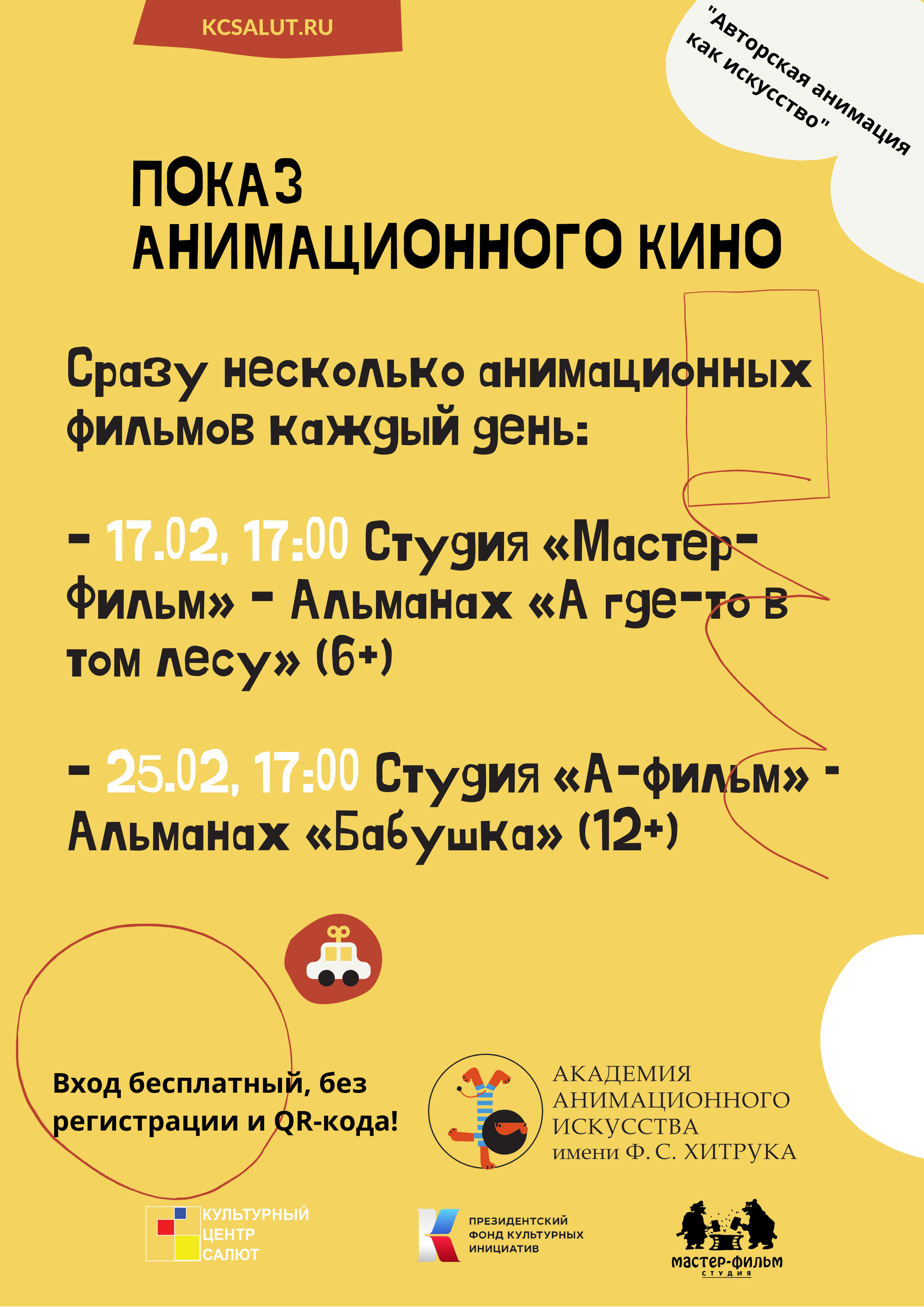 17 февраля 17: 00 в Культурном центре Салют состоится показ анимационного кино - альманах «А где-то в том лесу» . В один день можно увидеть сразу 7 анимационных фильмов от студии "Мастер-фильм"