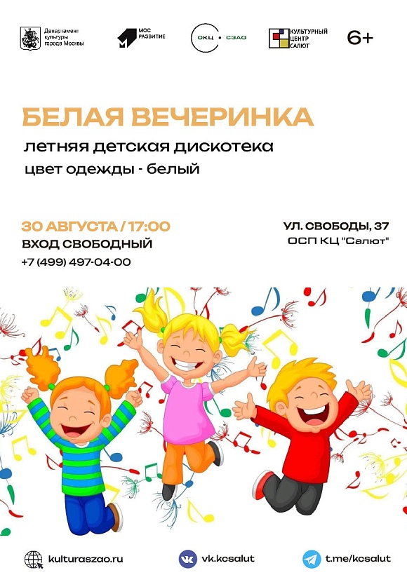 В Культурном центре "Салют" состоится интерактивная дискотека для детей школьного возраста. Условие - придти одетым в белое!