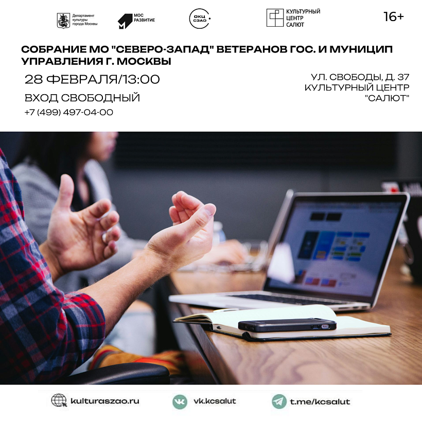 Проведено собрание совета ветеранов государственной и муниципальной службы СЗАО пройдет в большом зале Восход Культурного центра "Салют". На собрании обсудили важные вопросы, и узнали о текущем состоянии дел совета и его членов на текущий момент. Вход для представителей организации - свободный. По завершению собрания зрителей ожидала концертная программа.