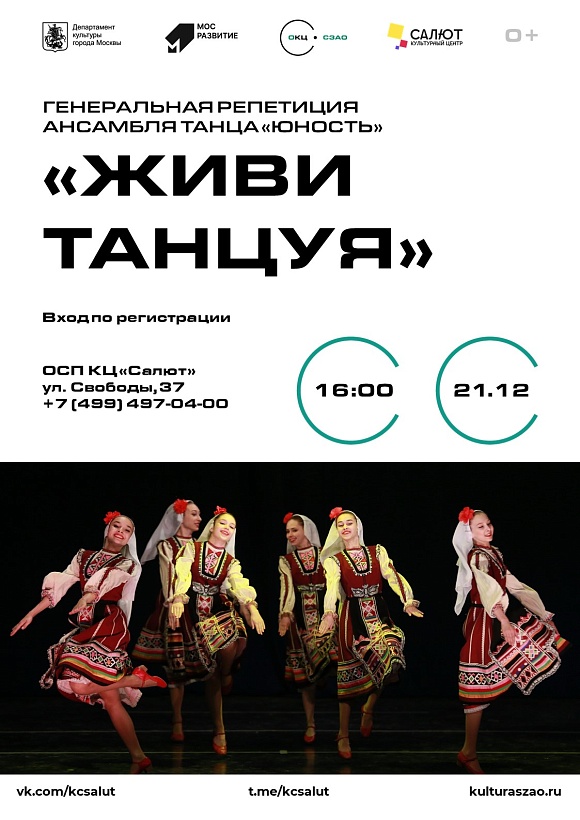 На большой сцене культурного центра "Салют" состоялась генеральная репетиция ежегодного концерта Московского городского творческого коллектива "Ансамбль танца "Юность" и Ведущего творческого коллектива г.Москвы "Студия хореографического мастерства "Юность".