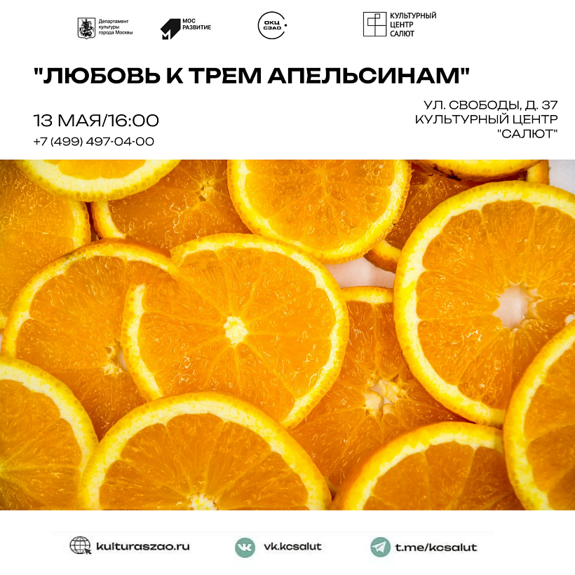 Театральная студия "Маски" по мотивам сказки "Любовь к трём апельсинам" Карло Гоцци представила одноименный спектакль . "Любовь к трем апельсинам" - это один из самых замечательных спектаклей, которые можно видеть. Он был поставлен на основе произведения итальянского драматурга Карло Гоцци и имеет очень глубокий смысл.