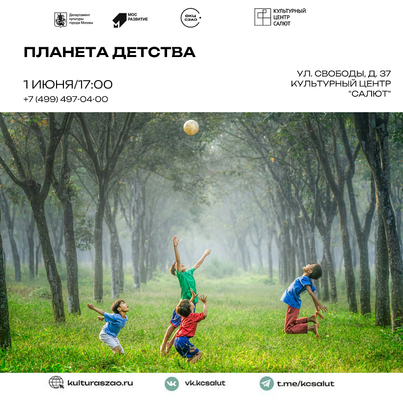 1 июня 2023 года Культурный Центр "Салют" совместно с активистами и волонтёрами организации "Прогрессивная молодёжь" проведет красочный праздник, посвященный Дню Защиты Детей. День Защиты детей- такой важный праздник, направленный на поддержку и особое внимание к подрастающему поколению нашей страны. Выездное мероприятие пройдет в сквере "Детский городок" по адресу: улица Аэродромная, дом 9. На празднике организуют различные мастер-классы: изготовление открыток, декоративно-прикладное искусство и другие; интерактивная программа, где дети смогли потанцевать и повеселиться вместе с волонтёрами "Прогрессивная молодёжь", а также пройдет праздничный концерт с участием самых ярких и запоминающихся коллективов Культурного центра "Салют", все номера в исполнении детской аудитории.