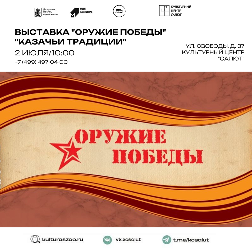 А также студия народной культуры "Казачий клуб" под руководством Фоменко А.О. провела интерактивную выставку об оружии, которым завоевывалась победа казаками в различных столкновениях. В основу лекции легли интересные факты и макеты вооружения времен ВОВ, а также традиционное оружие казаков - шашки, нагайки. Экспозицию выставки будут сопровождалась казаки, которые ответили на вопросы посетителей.