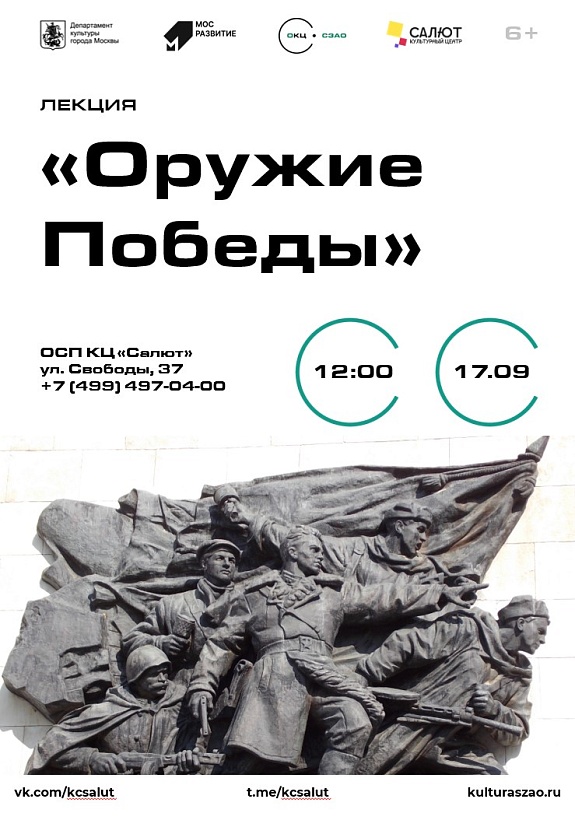 На интерактивной лекции «Оружие Победы» участникам рассказывают об истории создания и назначении отечественного оружия. На выставке представлены экспонаты, которые можно рассмотреть, потрогать и даже сфотографировать.