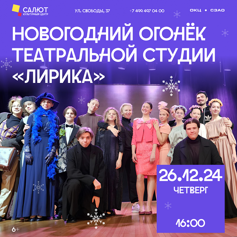 Новогодний огонек театральной студии "Лирика" — это волшебное событие, которое подарит вам незабываемые впечатления. В праздничной атмосфере вы сможете насладиться выступлениями талантливых актеров, которые продемонстрируют свое мастерство в различных жанрах: от драмы до комедии.