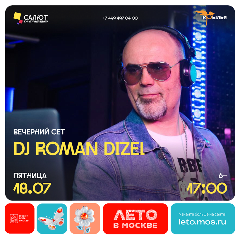 В рамках проекта «Лето в Москве» состоится незабываемый вечерний сет от талантливого DJ Roman Dizel. Этот креативный диджей порадует гостей ярким музыкальным шоу, наполненным энергичными ритмами и атмосферой летнего праздника. Его плейлист объединяет современные хиты, электронные биты, популярные танцевальные композиции и авторские треки, создавая уникальную музыкальную атмосферу, которая зарядит позитивом и настроением на весь вечер. В динамическом выступлении DJ Roman Dizel использует профессиональное оборудование, интерактивные элементы и световые эффекты, погружая зрителей в мир современной электроники и танцевальной культуры. Этот вечер идеально подойдет для тех, кто хочет расслабиться, потанцевать и насладиться летней атмосферой под музыку в приятной компании. Не пропустите возможность окунуться в музыкальное приключение и провести время в стиле DJ Roman Dizel!