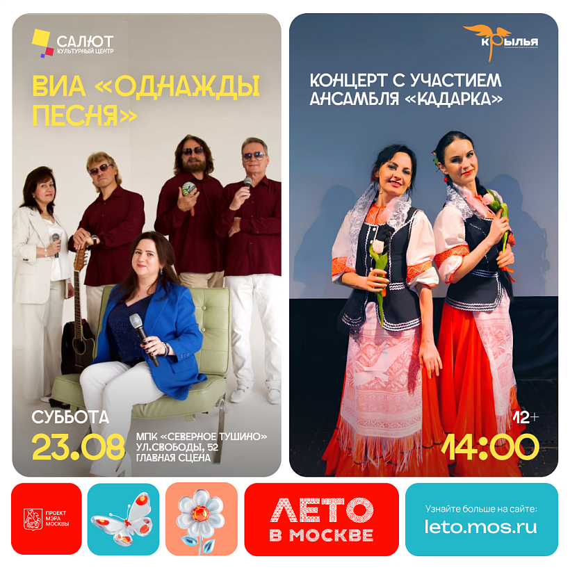 В парке «Северное Тушино» состоится концерт ВИА "Однажды песня" совместно с танцевальным коллективом "Кадарка" .