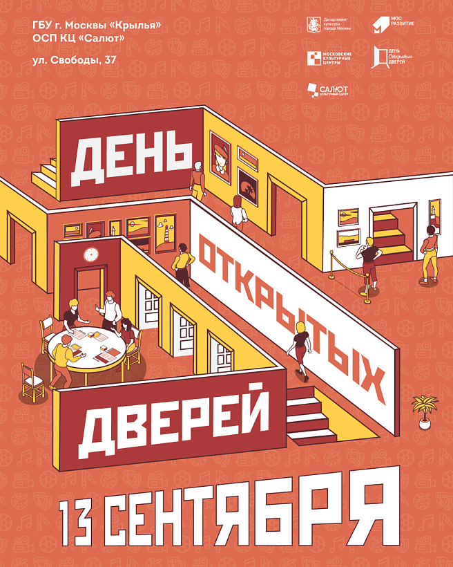 Культурный центр «Салют» с радостью открывает свои двери и приглашает вас принять участие в акции «День открытых дверей»! 13 сентября с 10:00 до 20:00