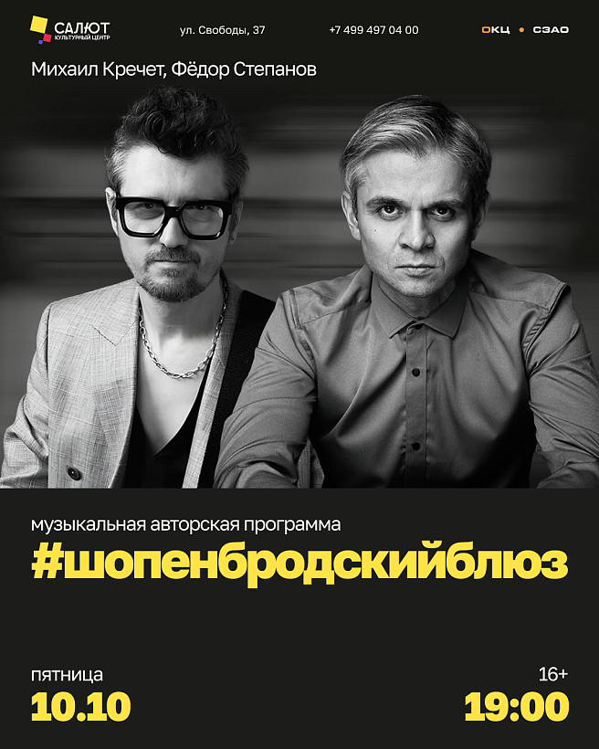Авторская программа #ШопенБродскийБлюз — необычный и интригующий музыкальный эксперимент. Это культурный диалог между прошлым и настоящим, между разумом и чувствами, между культурными кодами и личными переживаниями.