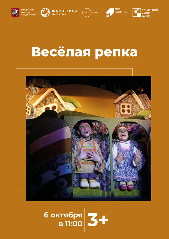 В Культурном центре «Салют» совместно с театром кукол «Жар-птица» пройдет спектакль по мотивам русской народной сказки «Веселая репка».
