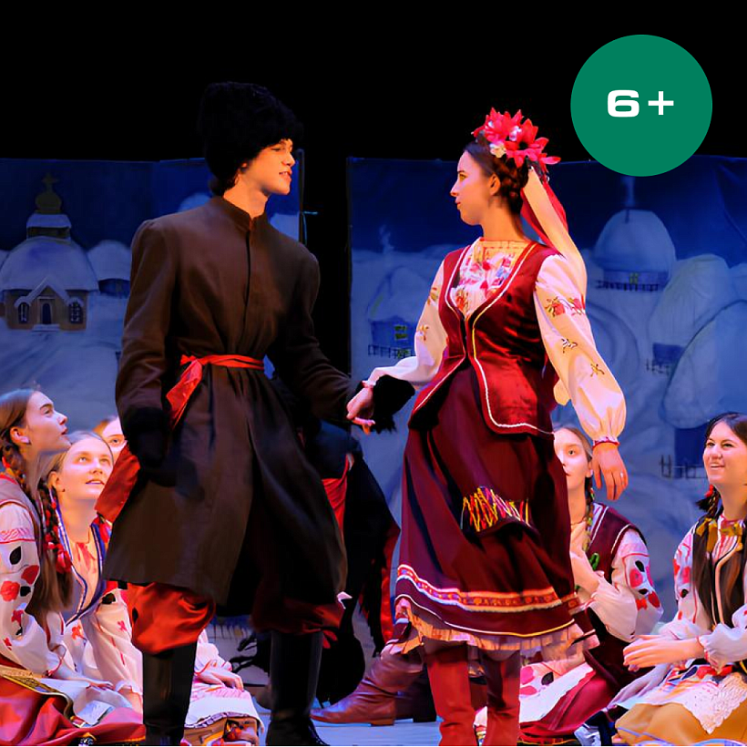 На сцене оживут персонажи гоголевских сказаний — кузнец Вакула, прекрасная Оксана, хитрая Солоха, веселый Чуб, черти и ведьмы, которые перенесут зрителей в мир волшебства, колядок и старинных гаданий. Смешные скоморошьи шутки и прибаутки заставят смеяться и детей, и взрослых, а сказочная атмосфера напомнит о чуде, которое всегда рядом.