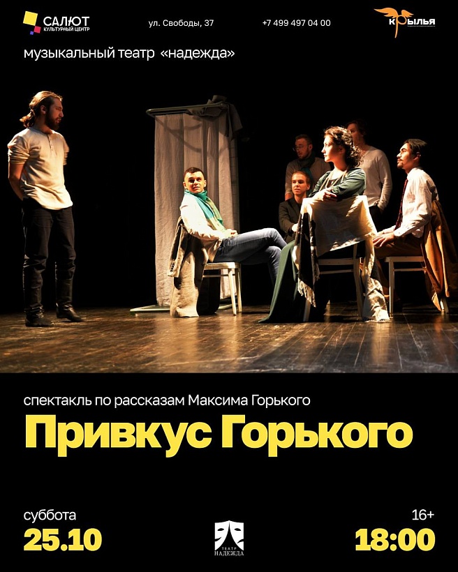 Музыкальный театр "Надежда" представляет "Привкус Горького" - музыкальный спектакль по рассказам Максима Горького.