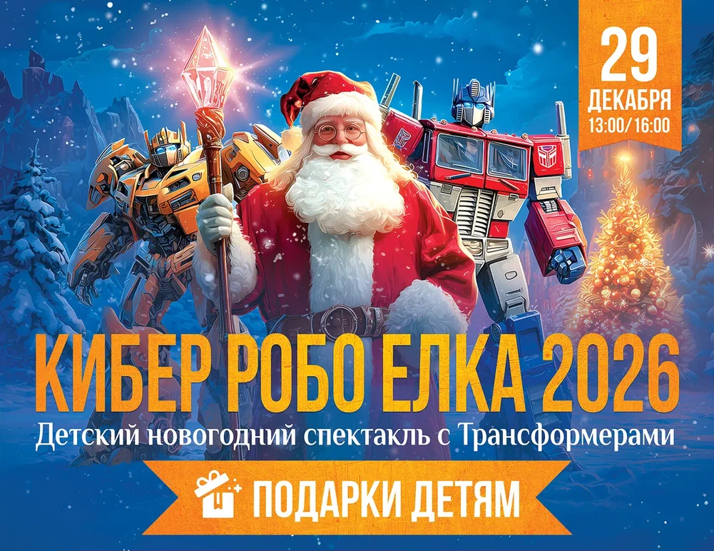 Приглашаем на детский новогодний спектакль с Трансформерами и Подарками от Детского Театра Роботов из Санкт-Петербурга "КИБЕР РОБО ЕЛКА 2026"