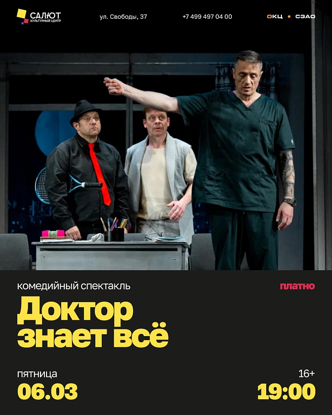 На сцене — остроумная, парадоксальная и очень живая история, в которой привычная «врачебная» ситуация выходит далеко за рамки обычного приёма.